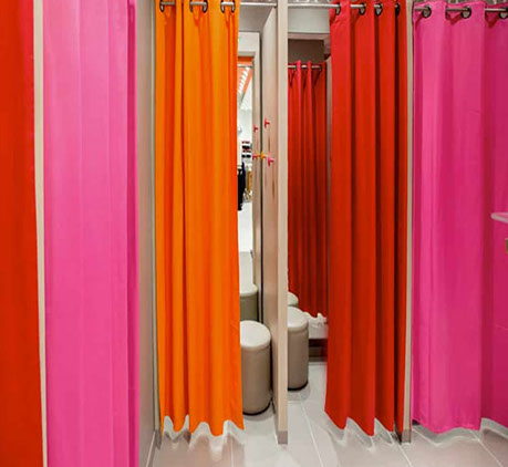 La grande opacité des tissus en fait également une très bonne solution pour les cabines d’essayage en magasin.